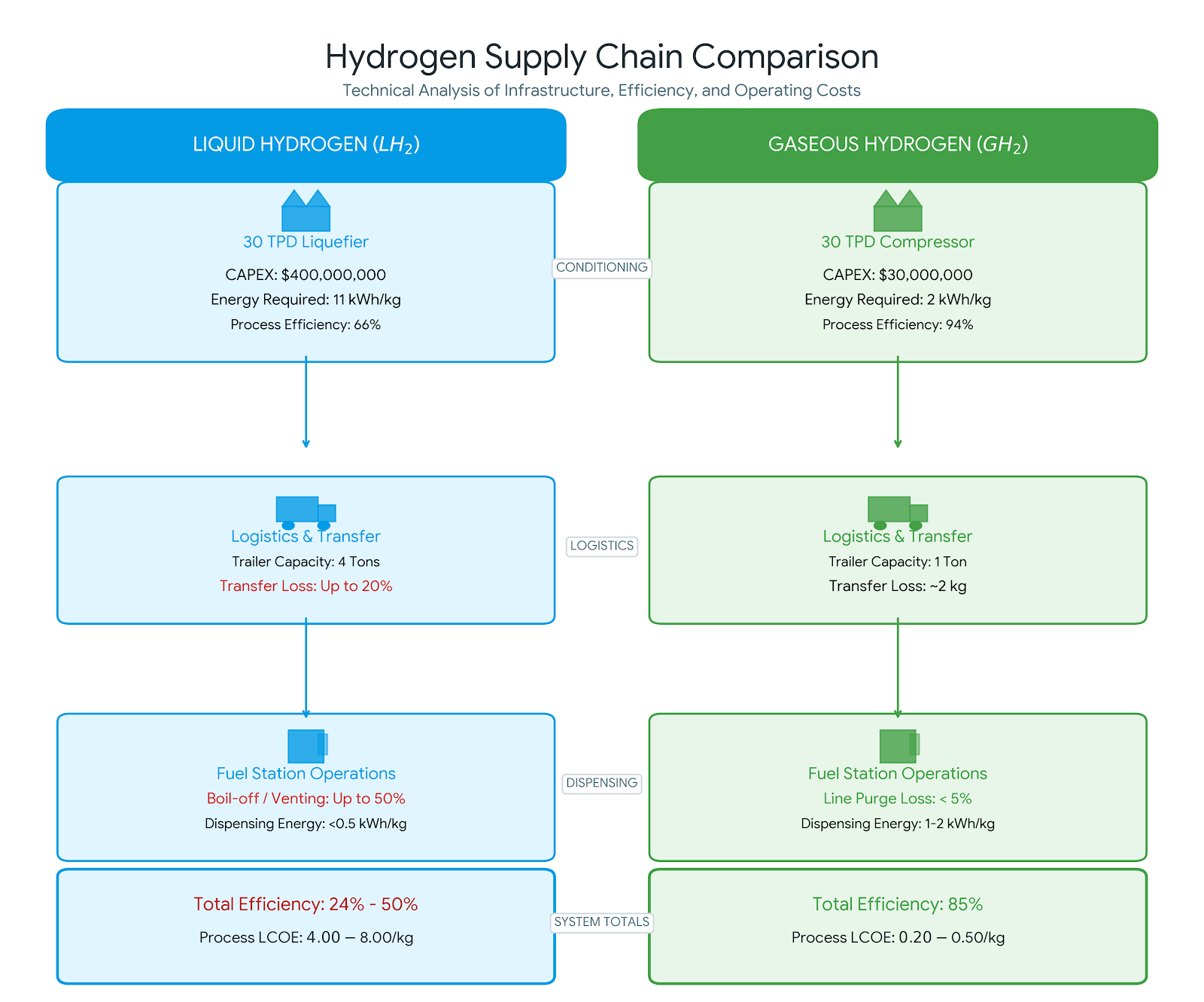 New gaseous H2 conditioning, distribution, and fueling systems are far more cost effective than liquid systems.